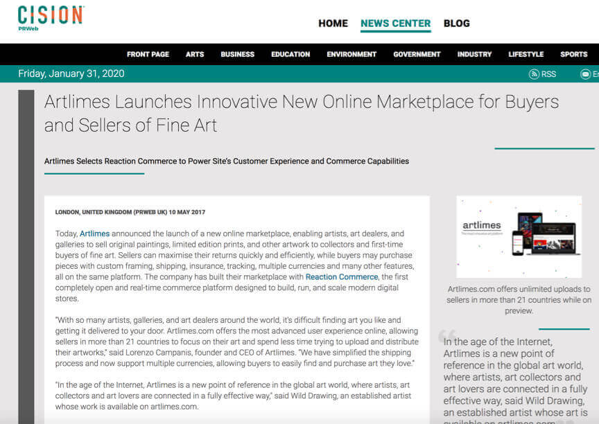 “Artlimes Launches Innovative New Online Marketplace for Buyers and Sellers of Fine Art”